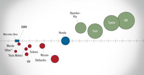 BEV sales represented just 5.9% of new-vehicle sales in October 2025, down from the all-time high of 11.3% in September 2025. BEV sales in October 2025 totaled just under 75,000 units, a decline of 46.7% compared to September 2025 and down 23.8% year over year. The expiration of the EV tax credits in September pulled ahead many EV sales that likely would have occurred later. The decline in BEV sales could have been more severe without several OEMs increasing their own incentives in October to help make up for the loss of the federal credit. According to J.D. Power, average incentive spending per unit on BEVs totaled $13,161, up $2,047 compared to September 2025. It remains to be seen what the natural demand for BEVs will be in the absence of the credit, but we do expect it will take quite some time for BEV sales to reach the rate they were in the final months of the EV tax credits.